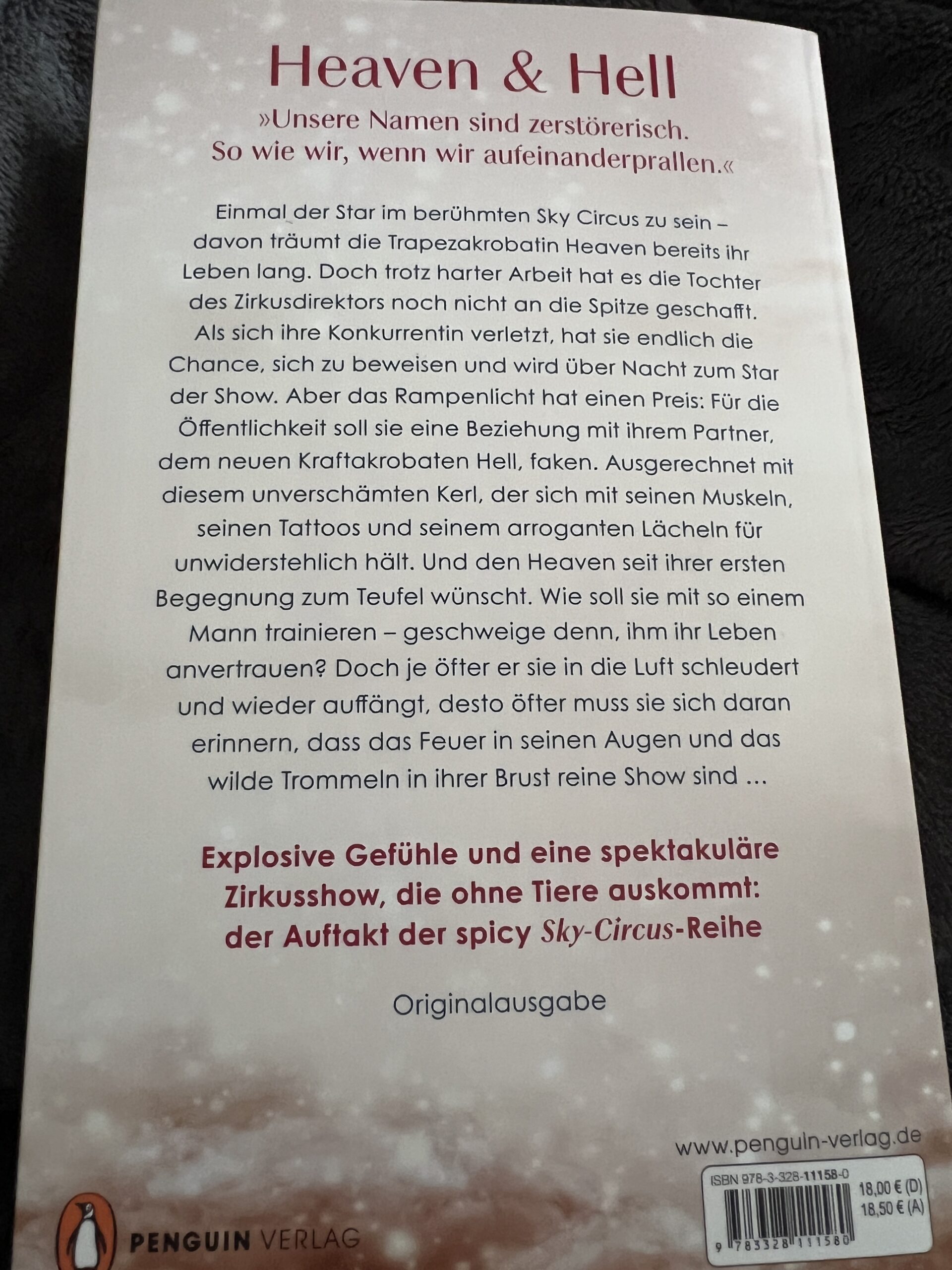 Einmal der Star im berühmten Sky Circus zu sein – davon träumt die Trapezakrobatin Heaven bereits ihr Leben lang. Die gespannte Erwartung im Zirkuszelt, die glänzende Augen der Zuschauer, schillernde Kostüme und riskante Acts – all das ist ihr Zuhause. Doch trotz harter Arbeit hat es die Tochter des Zirkusdirektors noch nicht an die Spitze geschafft. Als sich ihre Konkurrentin verletzt, hat sie endlich die Chance, sich zu beweisen und wird über Nacht zum Star der Show – aber das Rampenlicht hat einen Preis: Für die Öffentlichkeit soll sie eine Beziehung mit ihrem Partner, dem neuen Kraftakrobaten Hell, faken. Ausgerechnet mit diesem unverschämten Kerl, der sich mit seinen Muskeln, seinen Tattoos und seinem arroganten Lächeln für unwiderstehlich hält. Und den Heaven seit ihrer ersten Begegnung zum Teufel wünscht. Wie soll sie mit so einem Mann trainieren – geschweige denn, ihm ihr Leben anvertrauen? Doch je öfter er sie in die Luft schleudert und wieder auffängt, desto öfter muss sie sich daran erinnern, dass das Feuer in seinen Augen und das wilde Trommeln in ihrer Brust reine Show sind …