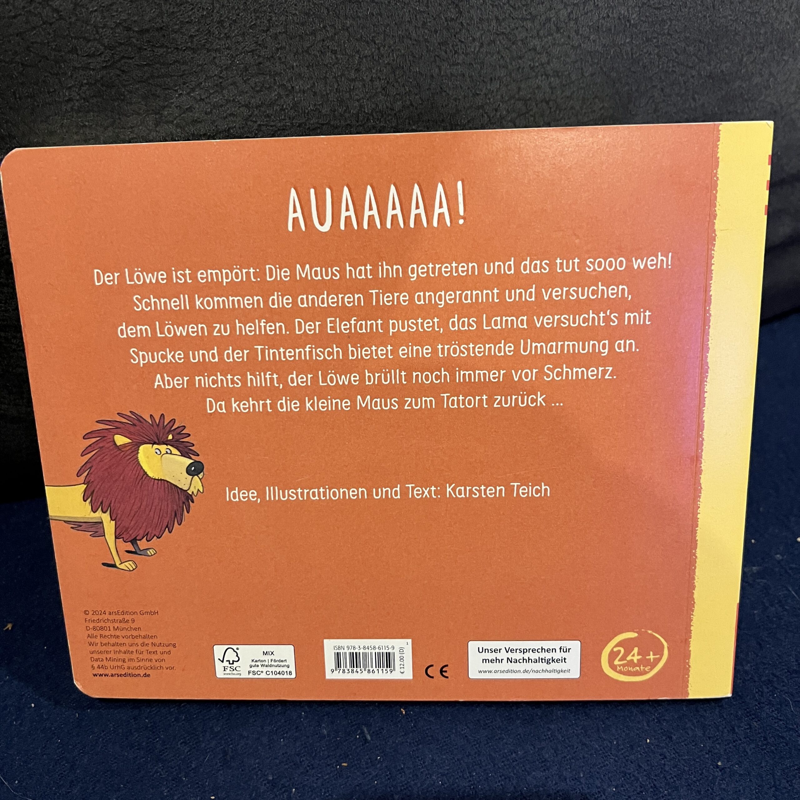 Allein dass hier der Löwe als der Charakter mit „Aua!“ ausgewählt wurde und die kleine Maus ihm „wehgetan“ hat, fand ich niedlich und witzig zugleich.