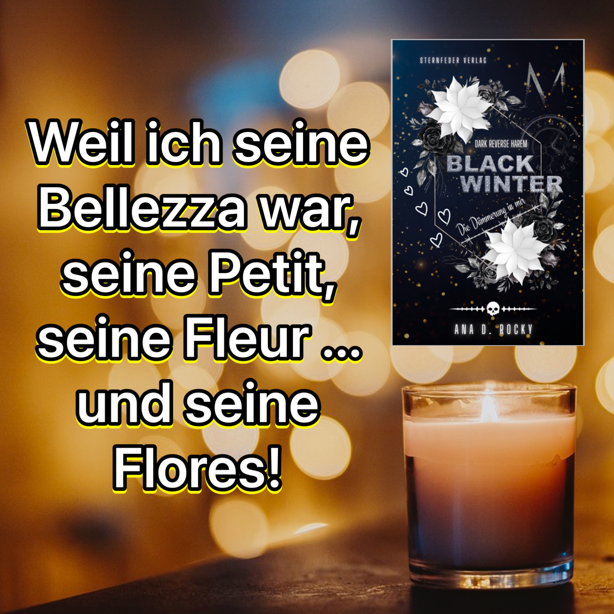 Wir sind deine Stiefbrüder auf Zeit und wir teilen. Alles. Auch in diesem Winter. Wenn wir in deine Finsternis hinabsteigen, dich zurück an unseren Hof holen und dir zeigen, was es heißt, sich vollends zwischen uns fallen zu lassen. Brenne im Feuer des Hexers. Kämpfe im Ring des Punchers. Blute im Thronsaal des Teufels. Tanze im Gemach des Harlekins. Vertraust du uns, kleine Knospe? Dass wir dich retten? Aber pass auf deine Seele auf, denn wir verschlingen deine. Willst du sie zurück? Dann komm zurück in den Pitch und blühe für uns.