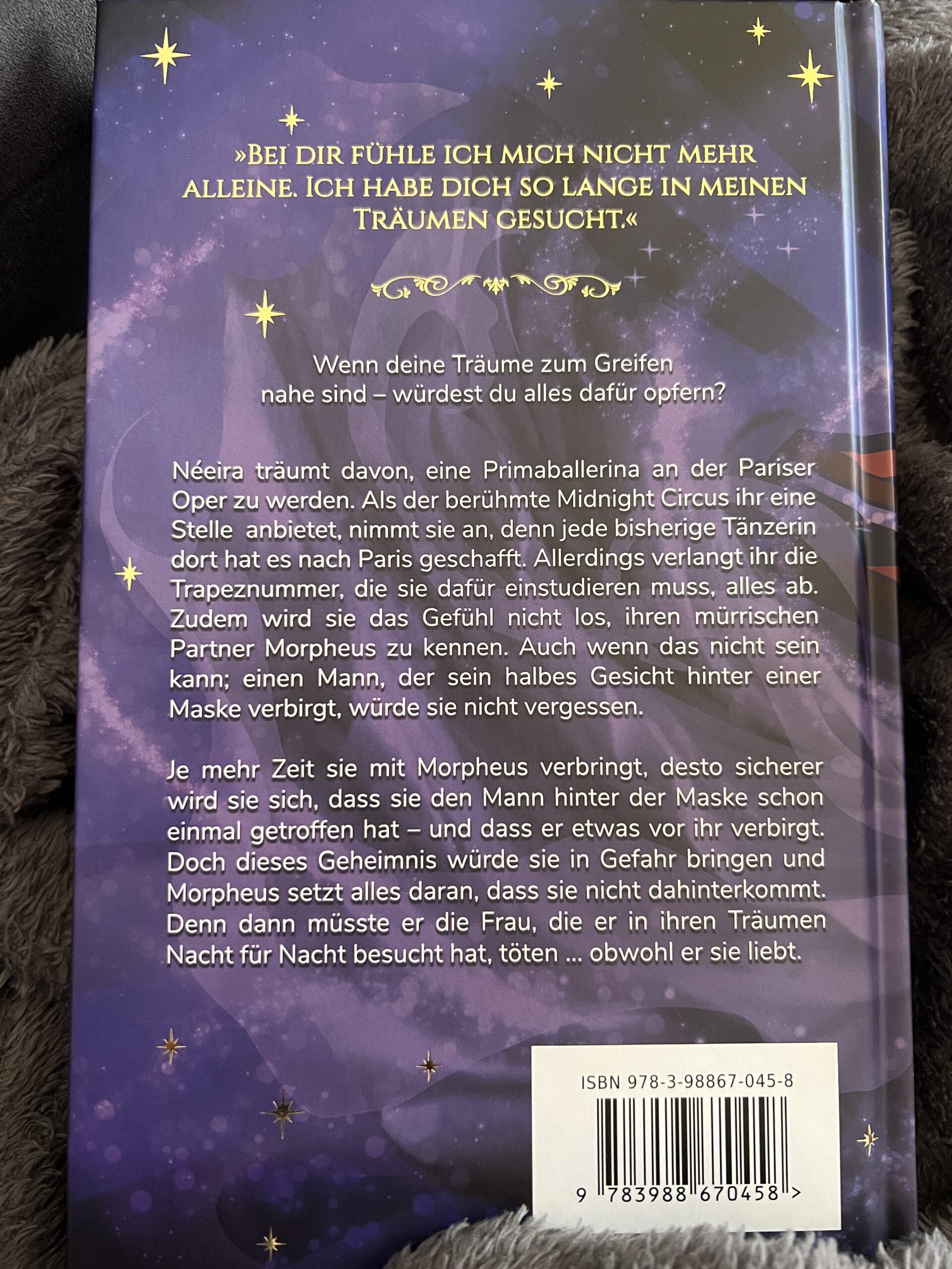 Néeira und Morpheus, der Zirkus, die Tänze … Eine unfassbar tolle Mischung. Dazu der fesselnde Schreibstil, der permanent aufgebaute Spannungsbogen und die Ausarbeitung der Charaktere.