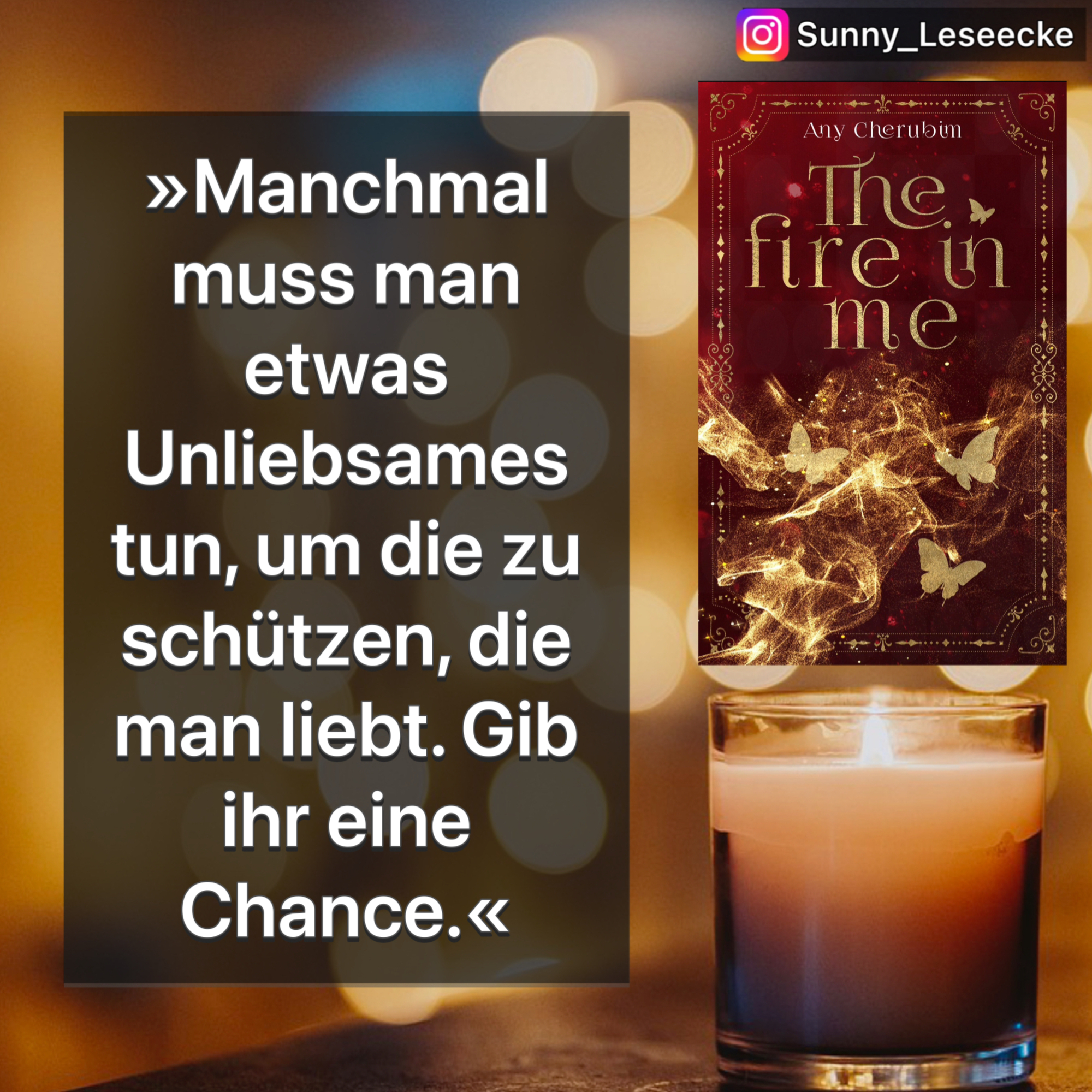 „The Fire In Me“ ist das zweite Buch der epischen Romantasy-Reihe „Mea Suna“ von Any Cherubim. Dies ist die komplett überarbeitete Neuauflage von „Mea Suna – Seelenfeuer: Band 2“ (2014 erschienen).