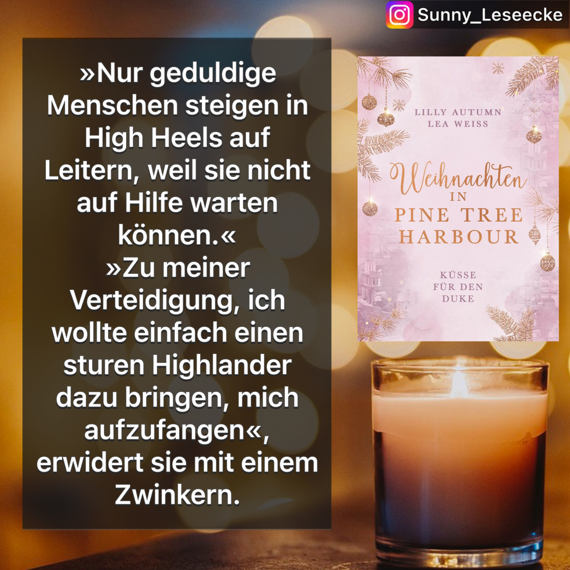 Weihnachten in Pine Tree Harbour- Küsse für den Duke ist der erste Band der Schottland-Christmas- Lovestories von Lilly Autumn und Lea Weiss. Jeder Band ist in sich abgeschlossen und kann unabhängig voneinander gelesen werden. Für das beste Leseerlebnis empfehlen wir jedoch beide Bücher.